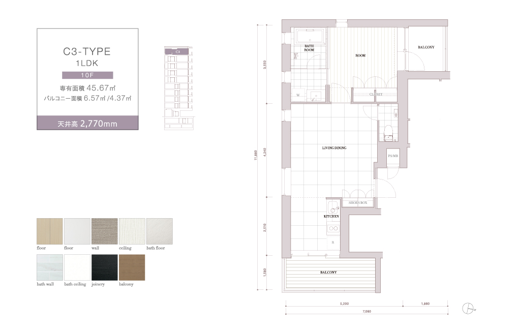 バルコニー面積 6.57 ㎡/ 4.37 ㎡