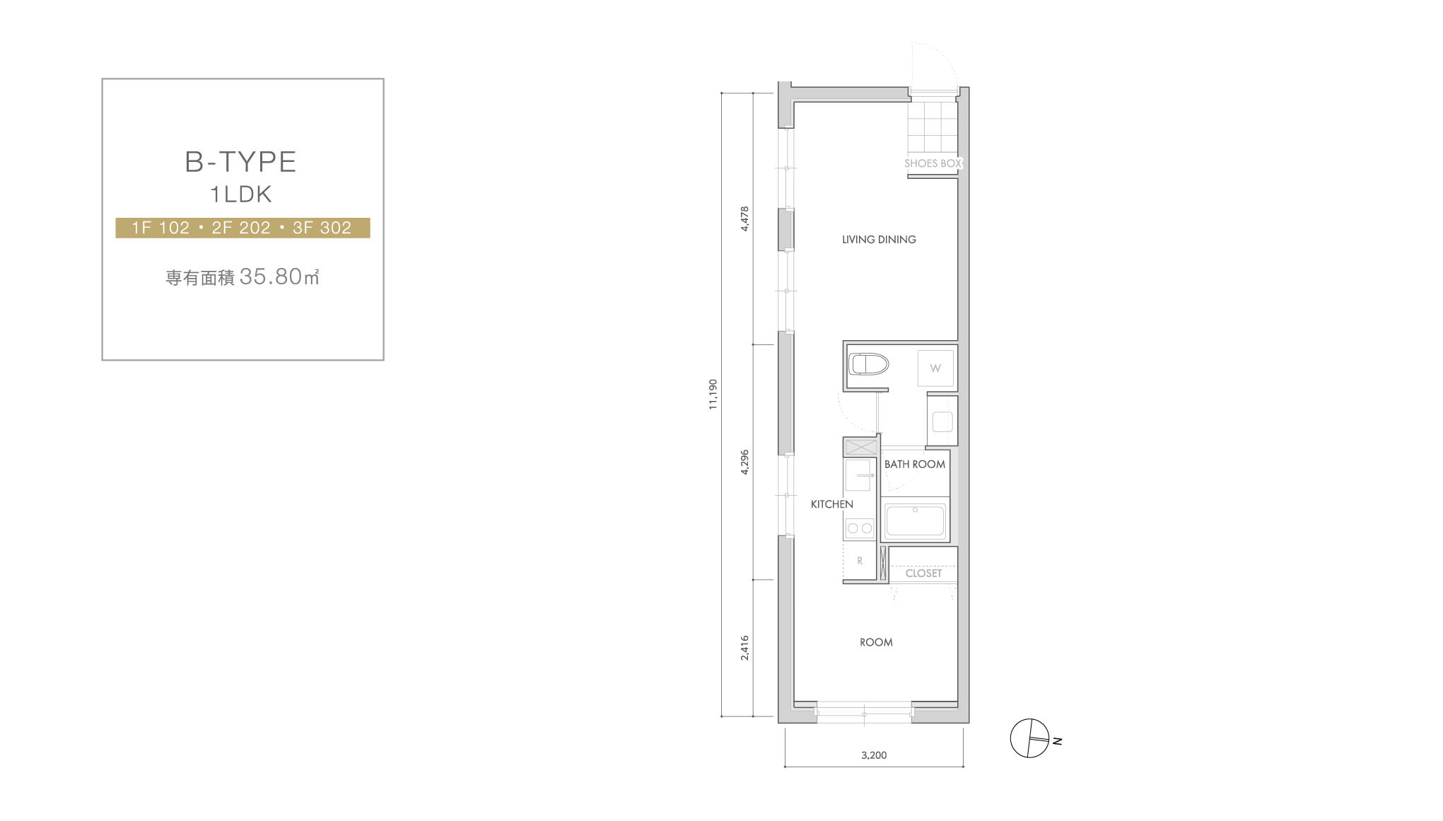 1LDK1F 102 ・ 2F 202 ・ 3F 302