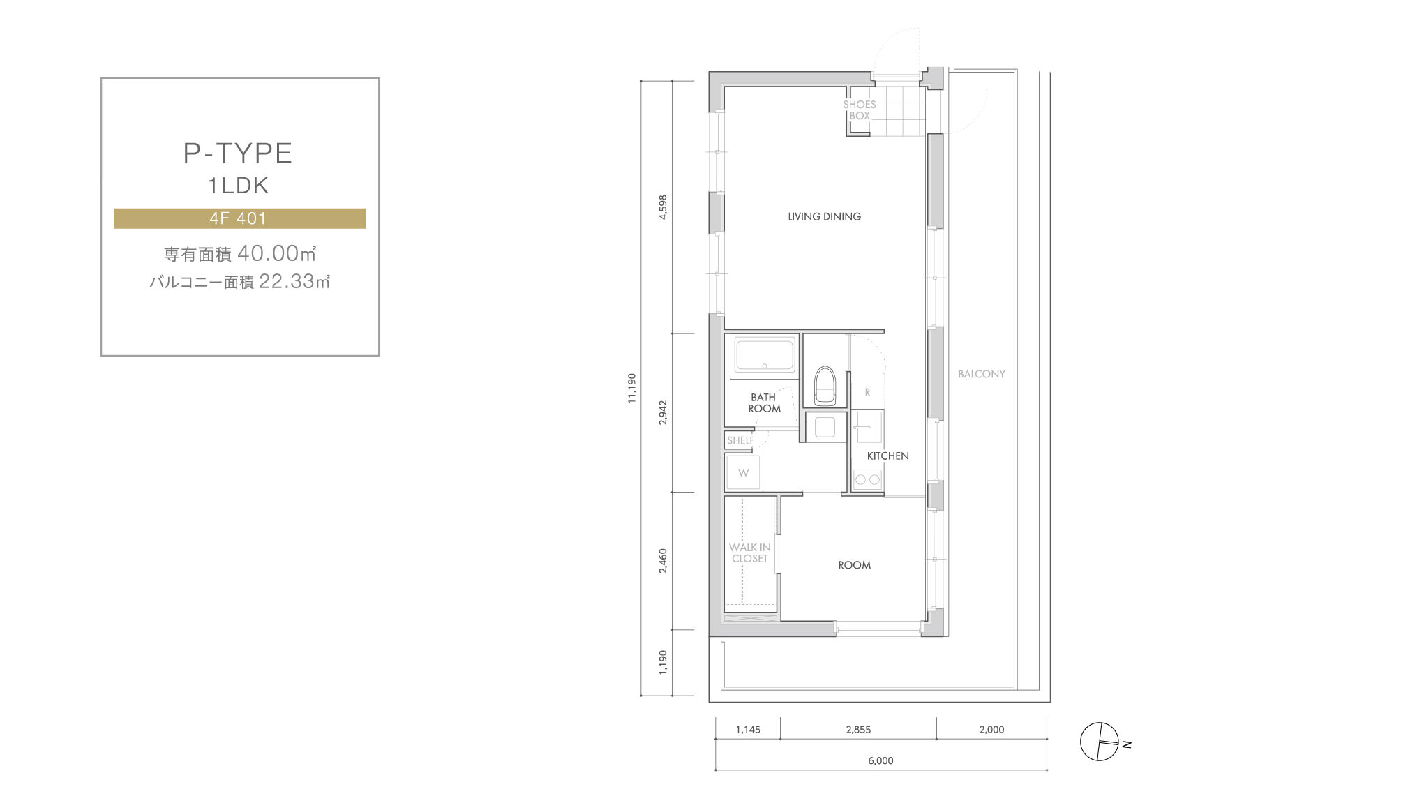 専有面積 40.00 ㎡ バルコニー面積 22.33 ㎡