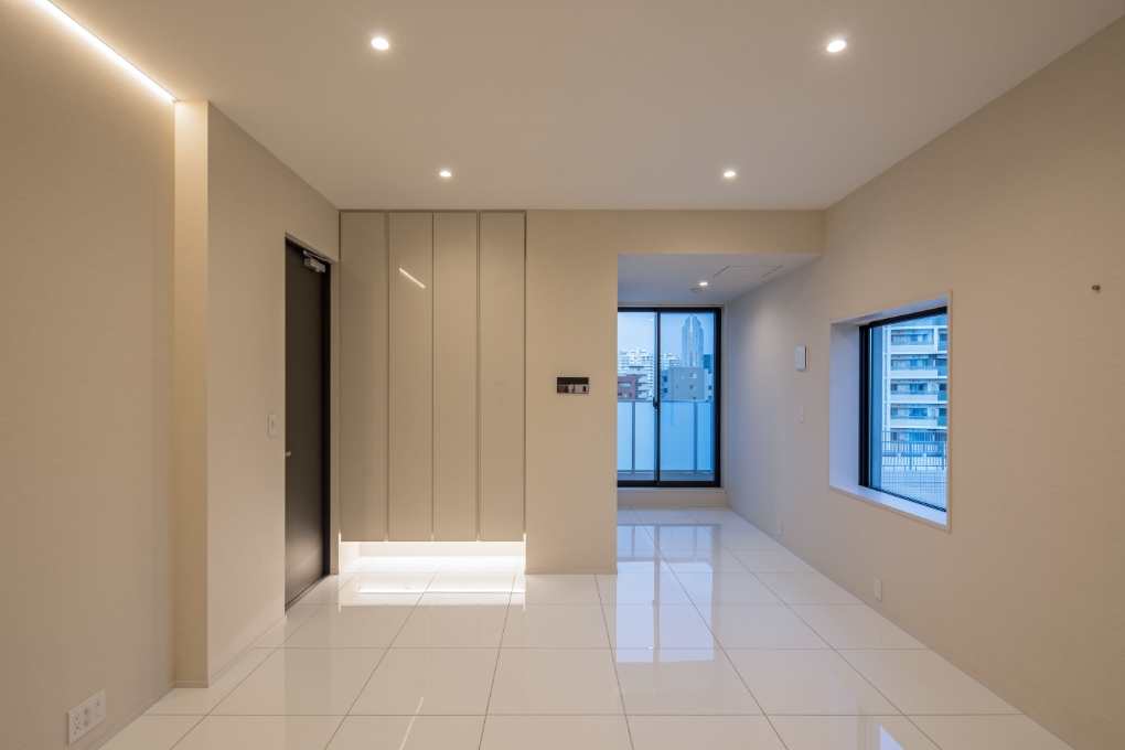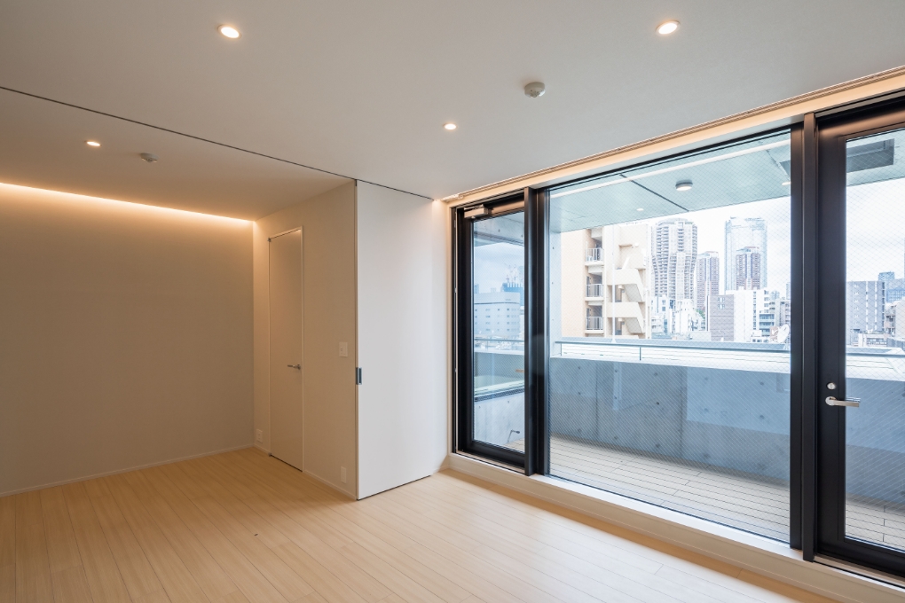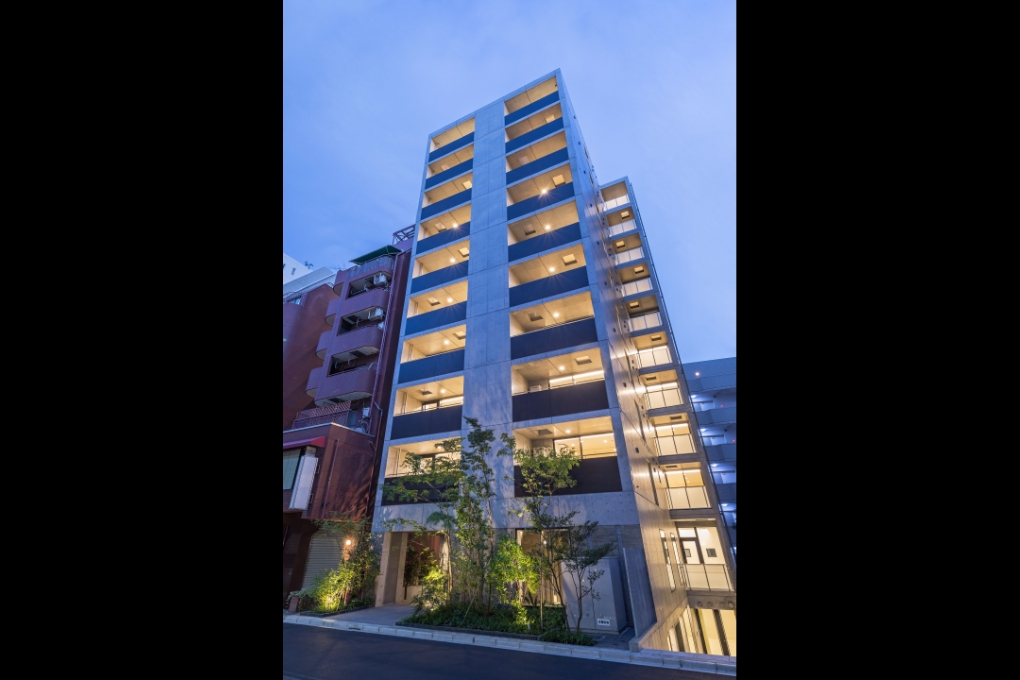 麻布十番という街の品格にふさわしい壮麗な地下1階地上10階建て。和洋が心地よく入り交じるエントランスを通り、居室に入ると大胆な構成のリビングや東京タワーを望むビューバスなどラグジュアリーな空間が広がります。日々、高揚感に包まれる住まいです。2021年6月竣工