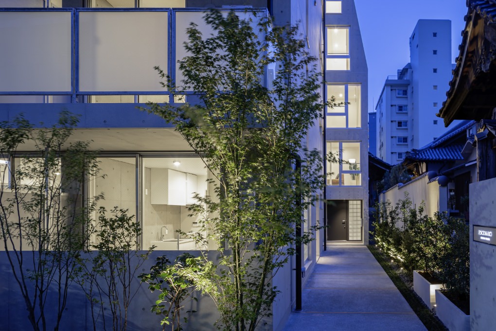 門前町であった往時の凛々しさを今に残す市谷薬王寺。その空気を継ぐ端正な意匠の建物と、イタリア式庭園を思わせるアプローチからなるレジデンスです。多くを角部屋とするほか、吹き抜けのメゾネットや天井高最大5,550mの1LDKを設計。縦横に広がる開放感が、この地に住まう歓びを深めます。2025年8月竣工
