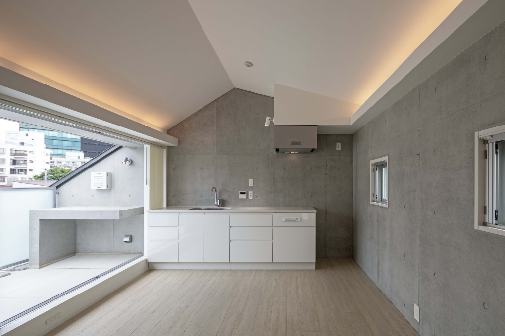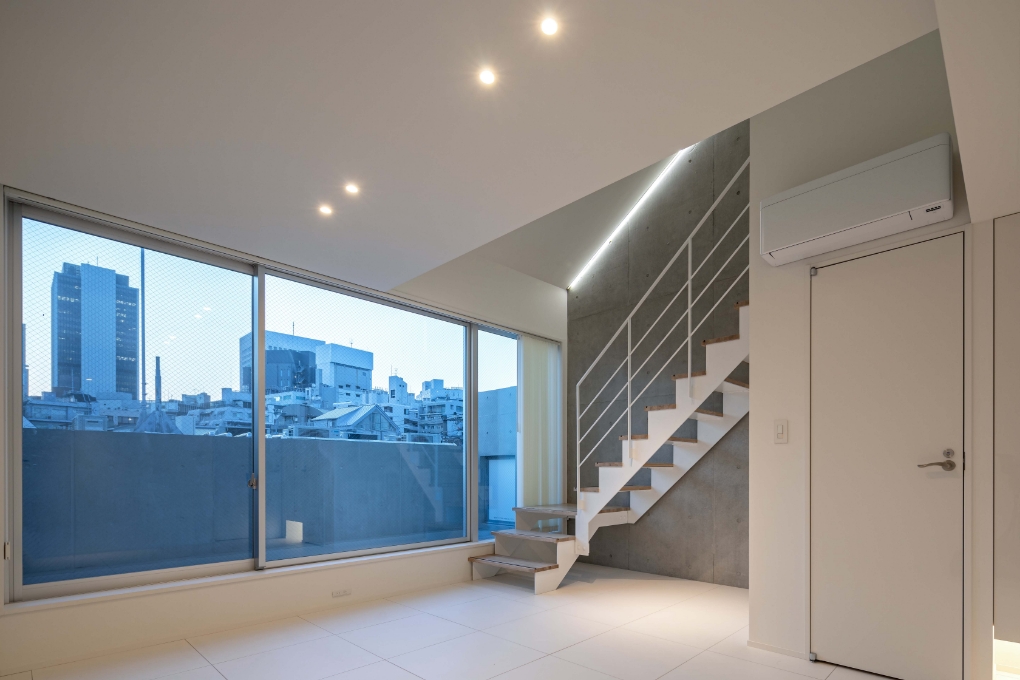 洗練された街々を間近にしながらも、静謐な空気に包まれた渋谷東エリア。端正なコンクリートの基壇部に、家型をした最上階を組み合わせたアイコニックな建物です。内部の複雑な空間構成は開放感にあふれ、多様で心地よい暮らしを叶えます。2022年5月竣工
